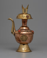 A unique blend of tradition and modernity, present to you is our Tibetan Ritual Vase. This vase, which was made with precision machinery, pays homage to the rich tradition of Tibetan rituals with its durable copper and brass body.