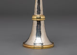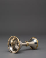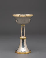 This Tibetan Serkyem Offering Set is handcrafted with a copper body and white metal accents. Traditionally used in Buddhist altar offerings to Dharma protectors, the set measures 18.5 cm in height and 16 cm in width. The design features a top bowl that overflows into the lower vessel, symbolizing generosity and the continuous flow of blessings. This piece is intended for use in spiritual practice and altar settings.