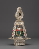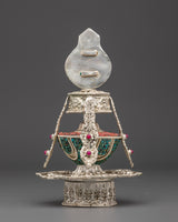 The Buddhist Ritual Long Life Vase, also known as the Tibetan Ayur Kalasha, is a sacred vessel symbolizing longevity, health, and prosperity. Used in Tibetan Buddhist rituals, it is believed to invoke the blessings of longevity deities like Amitayus and White Tara, who are revered for their power to protect and extend life. The vase is traditionally filled with sacred substances, such as herbs, grains, and mantras, channeling divine energy to promote well-being and vitality. It is a powerful tool in ceremonies to overcome obstacles and invite auspicious blessings. Whether placed on an altar or in meditation, the Long Life Vase represents a connection to spiritual vitality, offering protection and guiding one toward a balanced and harmonious life.