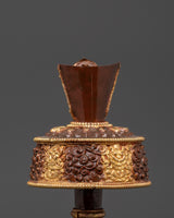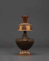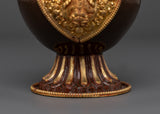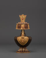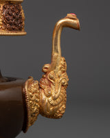 Meticulously crafted, the Bhumba exemplifies sacred craftsmanship. Its oxidized copper and gold-plated details blend into a timeless design handed down through generations. The vessel’s sleek, glossy finish paired with detailed ornamentation makes it a suitable addition to any altar, shrine, or meditation area. Weighing merely 0.47 kg, it is easily manageable during rituals while maintaining sufficient durability to uphold its spiritual importance. The traditional bhumba functions as both a practical offering tool and a profound symbol of purity and divine blessings during rituals and ceremonies. The fusion of copper and gold plating enhances its spiritual meaning, making it a lasting part of your sacred collection.