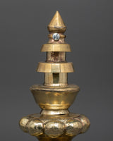 Add a sense of religious architecture to your home with this Traditional Brass Gajur, a temple finial treasured for its representation of spiritual protection and benefits. This Gajur, standing 30 cm tall and made of carefully polished brass, is ideal for embellishing Buddhist altars, home shrines, or meditation rooms.