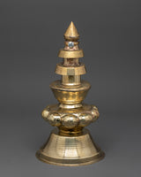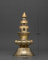 This artwork, expertly crafted from brass, captures the timeless elegance and profound cultural significance of Himalayan temples. It is lightweight, weighing only 0.42 kg, and can be placed atop a shrine to enhance the spiritual ambiance and invite heavenly benefits into your surroundings.