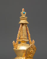 Spiritual Buddhist Gold Plated in Copper Stupa | Tibetan Buddhist Art