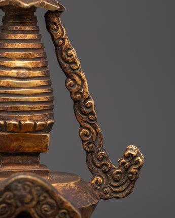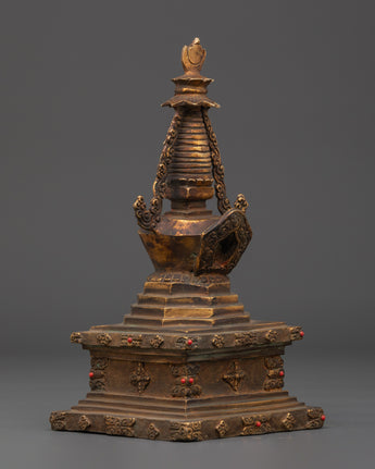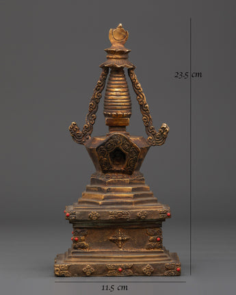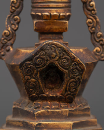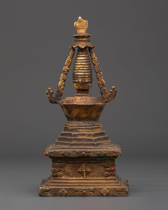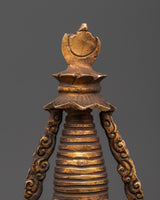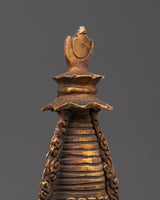 Copper And Gold Plated Stupa With Antique Finishing | Sacred Spiritual Artifact