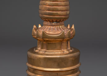 Crafted with intricate attention to detail, the Gold Glided Buddhist Stupa combines profound spiritual symbolism with exquisite craftsmanship. Its gold-glided copper finish lends elegance that enhances any room’s ambiance. Inspired by traditional Tibetan Buddhist architecture, the stupa represents wisdom, peace, and the path to spiritual awakening. Beyond its artistic beauty, this stupa serves as a powerful focal point for meditation and ritual practices, helping to deepen your connection to inner calm and mindfulness. Elevate your sacred space with this meaningful and inspiring piece that supports your spiritual journey every day. This Gold Glided Buddhist Stupa is ideal for those seeking a symbol of enlightenment and peace. Whether used for daily meditation, as part of a Buddhist altar, or as a gift for a spiritual friend, it represents a constant reminder of the Buddha’s teachings.