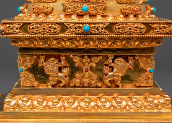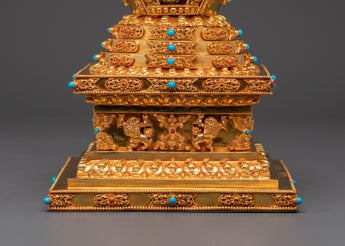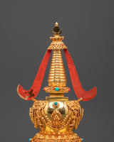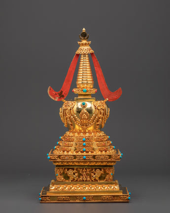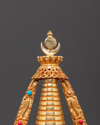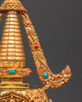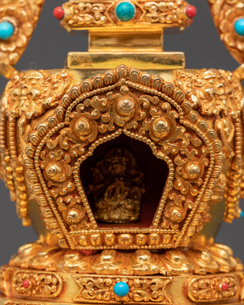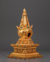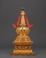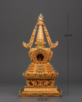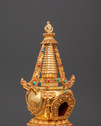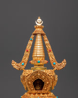Gold Plated Buddhist Stupa for Decor | Tibetan Stupa for Spiritual Home Decor
