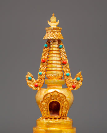 Golden Stupa for Altar | Tibetan Buddhist Stupa for Meditation