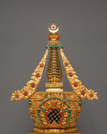 Golden Stupa for Atlar | Handcrafted Copper and Gold Plated Stupa