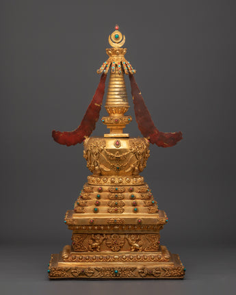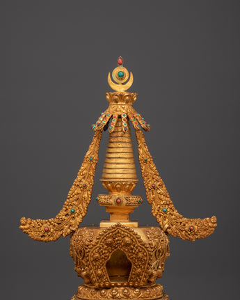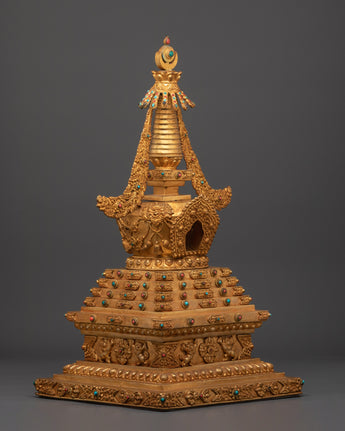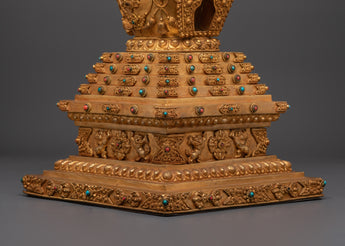 The Handcrafted Buddhist Altar Stupa is a profound symbol embodying the Buddha’s mind, the journey toward enlightenment, and the harmony of wisdom and compassion. This gold-plated stupa is designed to enhance meditation practices and ritual offerings, making it a vital centerpiece for any Buddhist altar or meditation space. Featuring vibrant turquoise and coral stones, it offers protective and healing energies that support spiritual growth and energy alignment. More than just a decorative piece, this stupa serves as a powerful spiritual tool, helping practitioners deepen their devotion, cultivate mindfulness, and elevate their spiritual journey with every use.