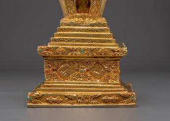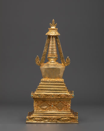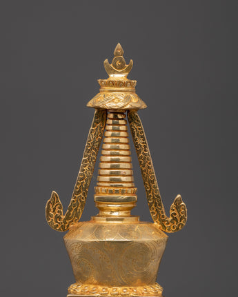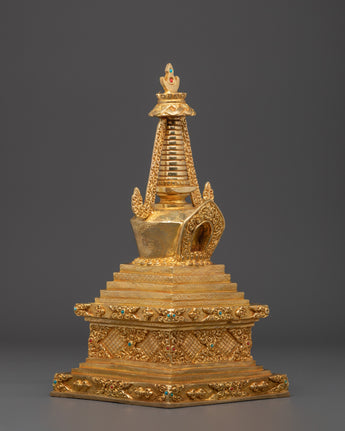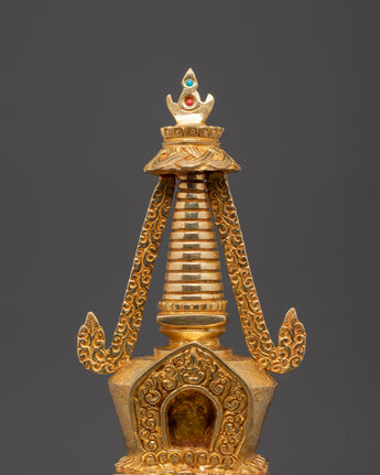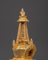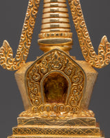 Handcrafted Gold Plated Stupa | Tibetan Buddhist Shrine Decor