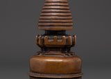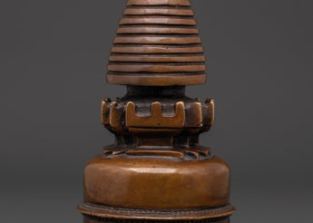 This Handcrafted Stupa Altar Decor is a significant spiritual centerpiece based on traditional Tibetan Buddhist architecture. The stupa was meticulously carved from oxidized copper and boasts complex elements that reflect centuries of spiritual workmanship. Each tier and carving contains powerful symbolism, signifying the enlightened mind, compassion, and spiritual journey. This stupa, whether put on a home shrine or used for meditation, inspires reverence and focused presence.