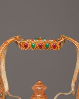 This handcrafted stupa for ritual ceremonies is 46cm high and 18.5cm wide, making it a striking and meaningful addition to your Tibetan altar or meditation space. The stupa's copper body is skillfully crafted with delicate filigree work, enhancing its beauty and spiritual significance. The Coral and Turquoise stones, beautifully arranged inside the design, represent healing, spiritual protection, and abundance, making this stupa an effective vessel for ritual offerings and spiritual blessings.