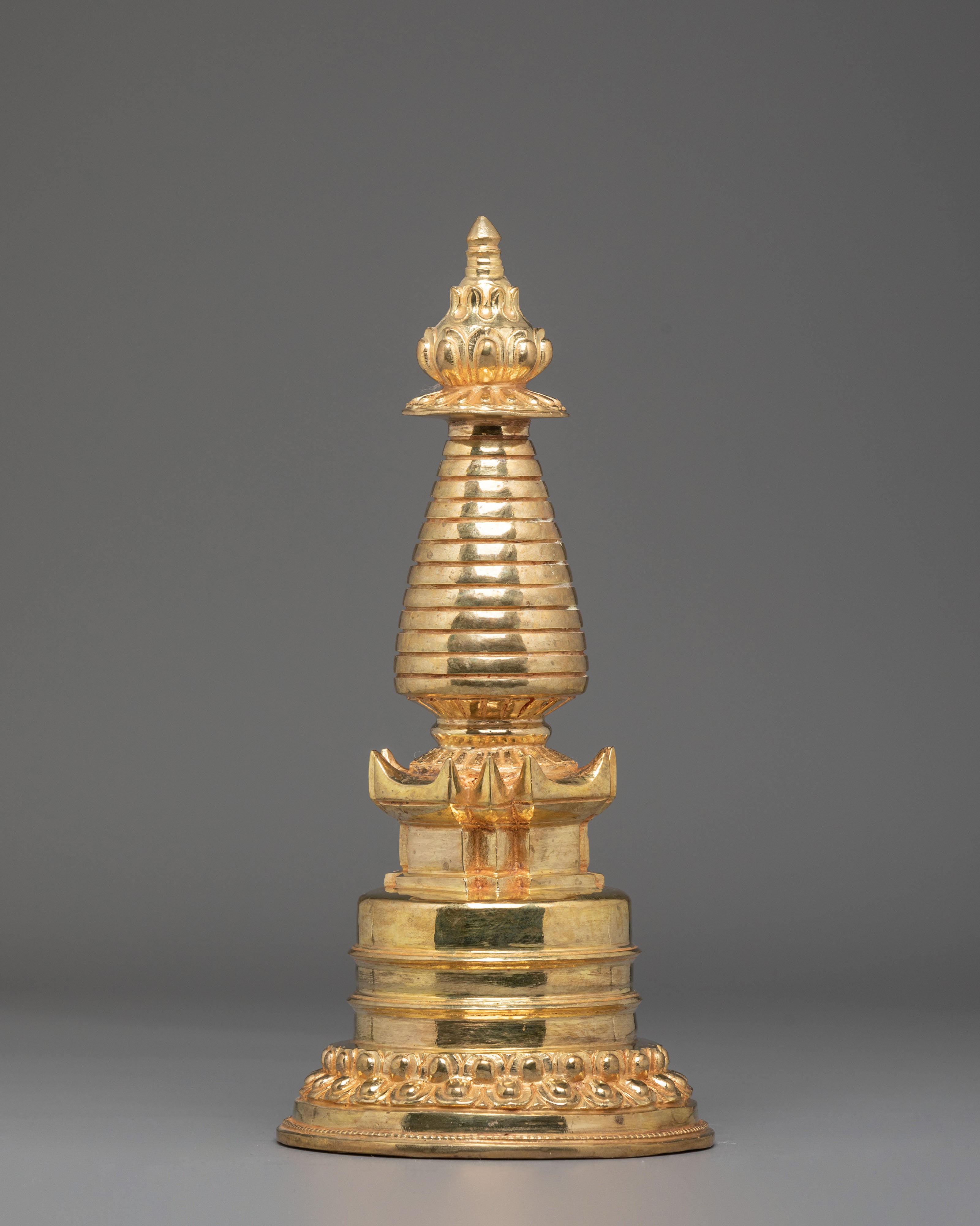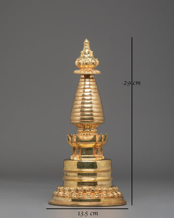 Each piece is meticulously hand-crafted, blending masterful artistry with serene spiritual essence. The radiant gold-plated finish elevates this sacred stupa into a beacon of divine beauty. Far beyond decoration, this spiritual centerpiece serves as a powerful meditation anchor and ritual companion, inviting deeper connection to enlightenment, inner peace, and mental clarity. A meaningful gift for seekers of wisdom and spiritual transformation.