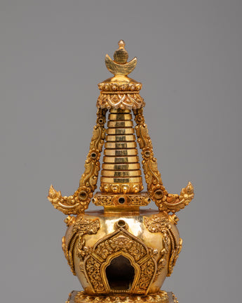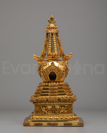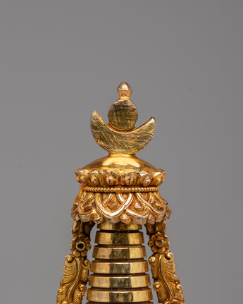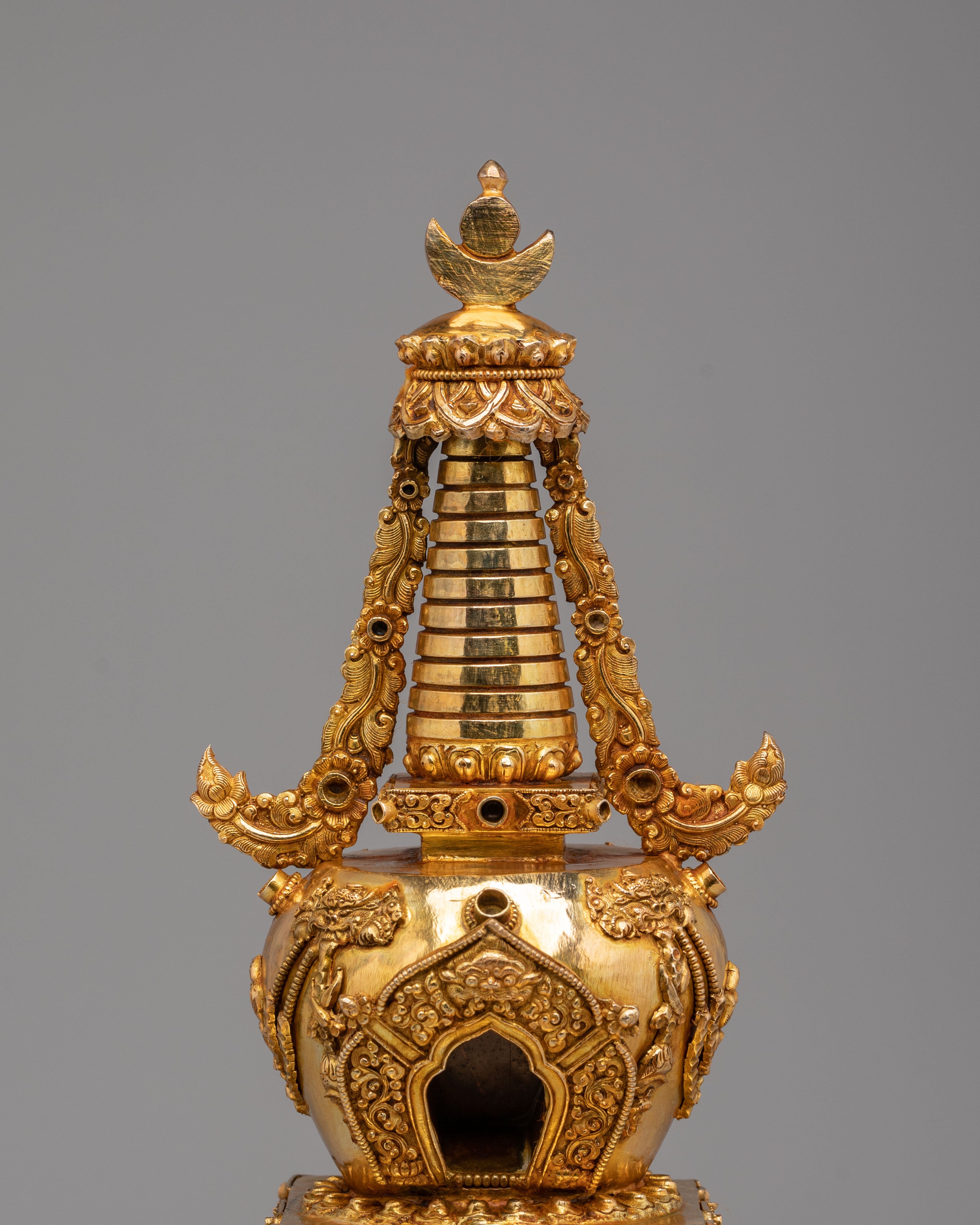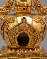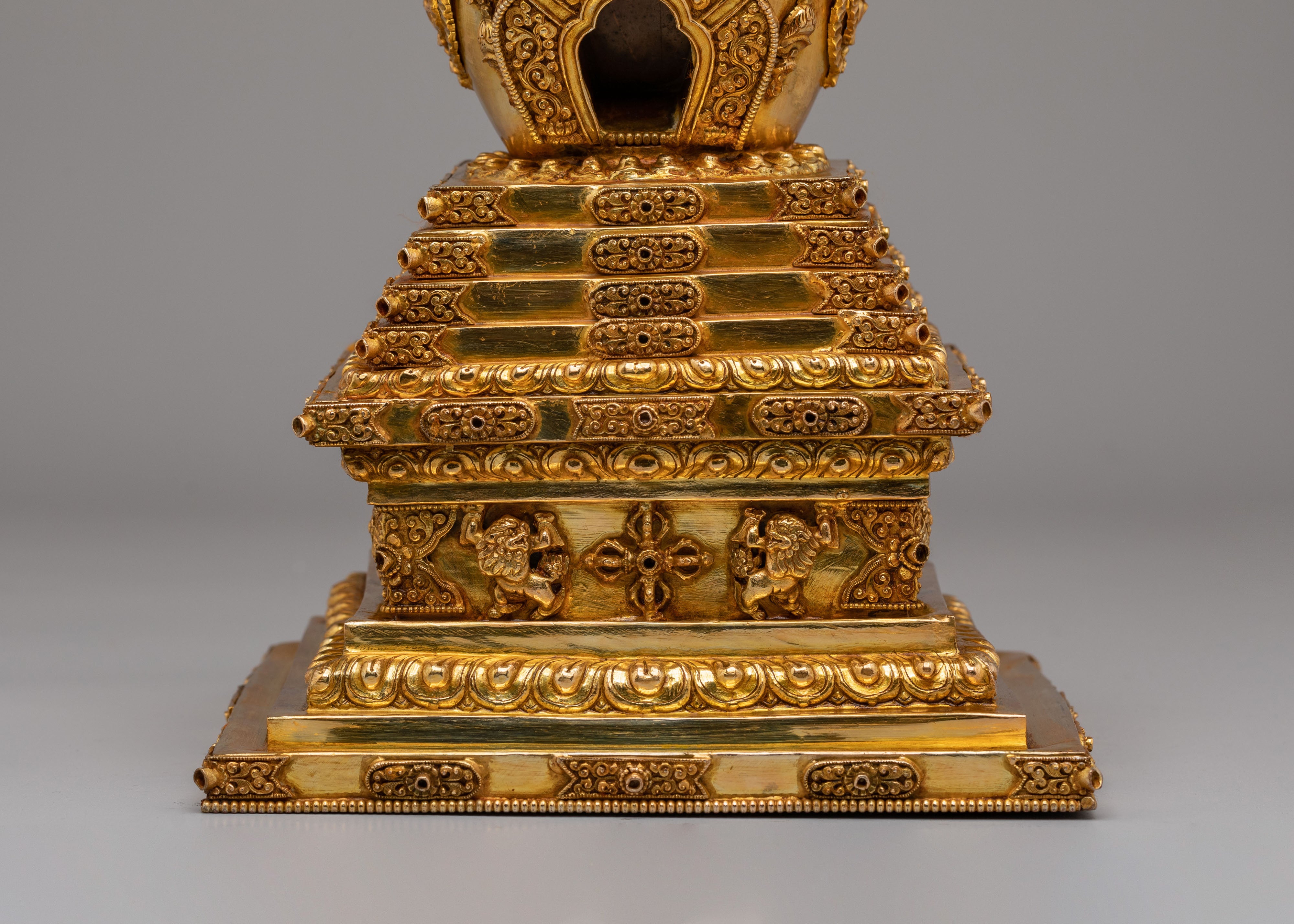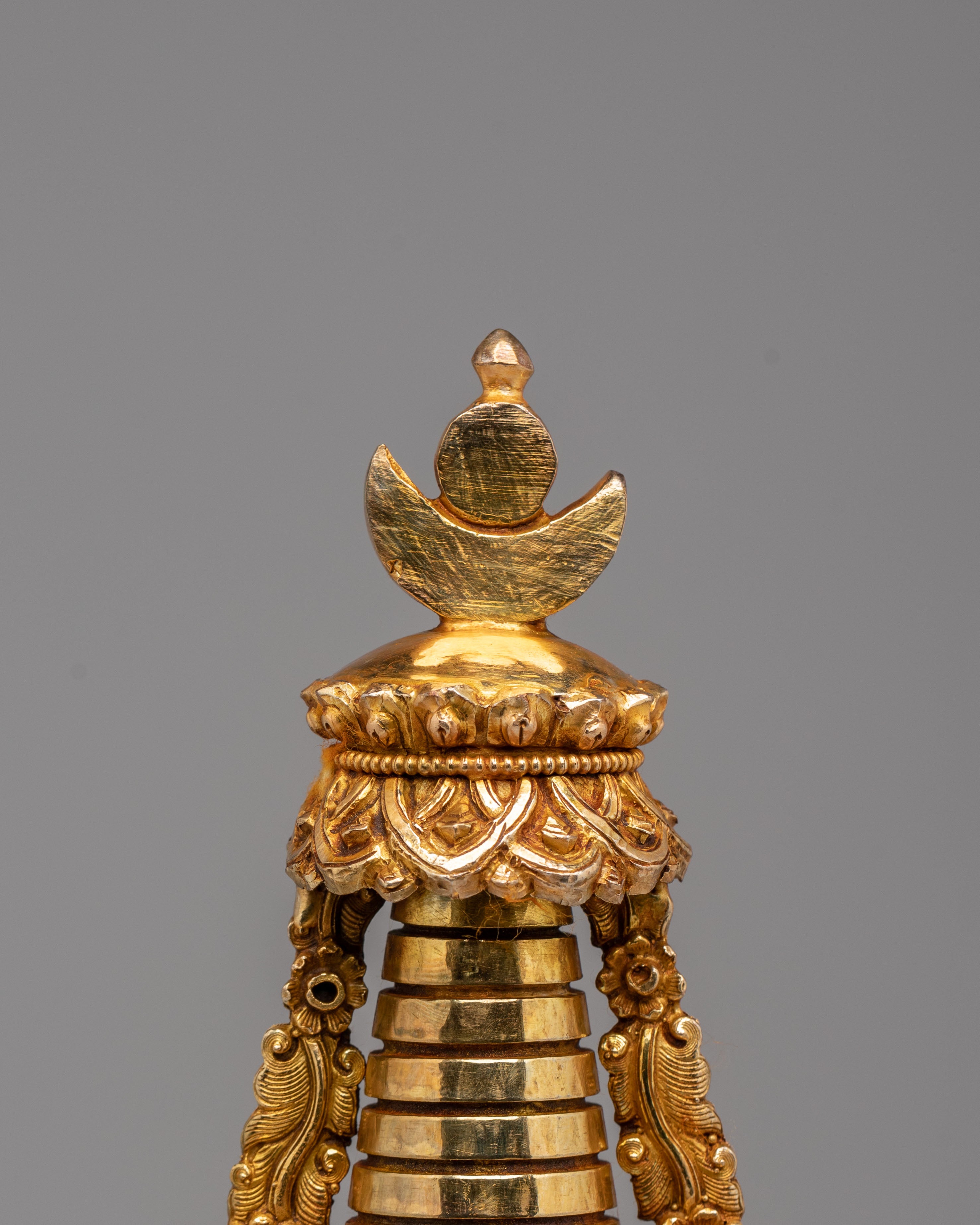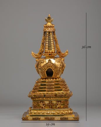 Perfect for practitioners seeking a meaningful ritual object, this stupa enhances spiritual practice by fostering mindfulness and devotion. Its radiant gold finish not only elevates its visual appeal but also embodies purity and wisdom, guiding you toward inner peace and spiritual growth. Ideal for daily rituals or as a decorative centerpiece, this stupa invites blessings, harmony, and enlightenment into your environment. Elevate your sacred space with this exquisite piece that combines artistic beauty with profound spiritual significance.