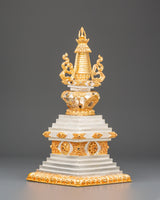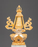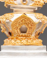 Handmade Stupa for Ritual Ceremonies | Electro Gold and Silver Plated Buddhist Stupa