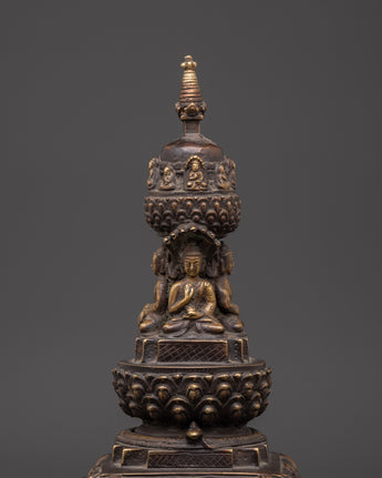 Sacred Buddhist Stupa Decor | Handcrafted Bronze Meditation Statue