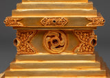 The stupa's design is filled with symbolic meaning. The lotus foundation represents purity, and the tower-like construction symbolizes the journey to enlightenment. The gold electroplating reflects divine light, which means wisdom and knowledge. Stupas, which have long been utilized in Buddhist temples, are designed to store sacred relics while also providing protection and creating a connection to higher spiritual realms. This piece encapsulates the essence of that tradition and serves as a reminder of the Buddha's teachings.