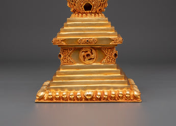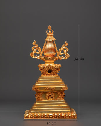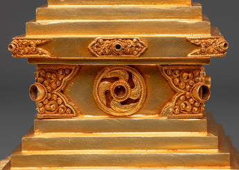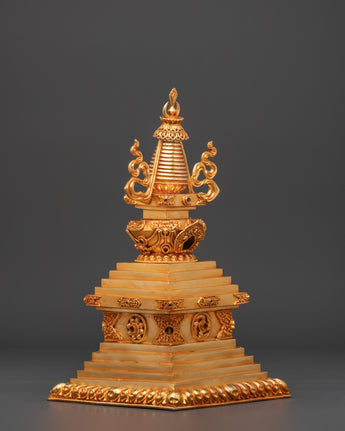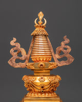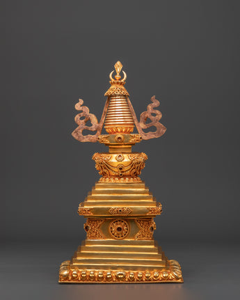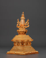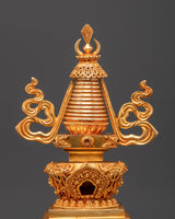 Handcrafted Sacred Traditional Buddhist Stupa | Gold Electroplated Copper Statue