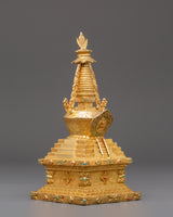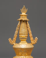 Spiritual Altar Stupa Decor | Gold Plated Tibetan Meditation Statue