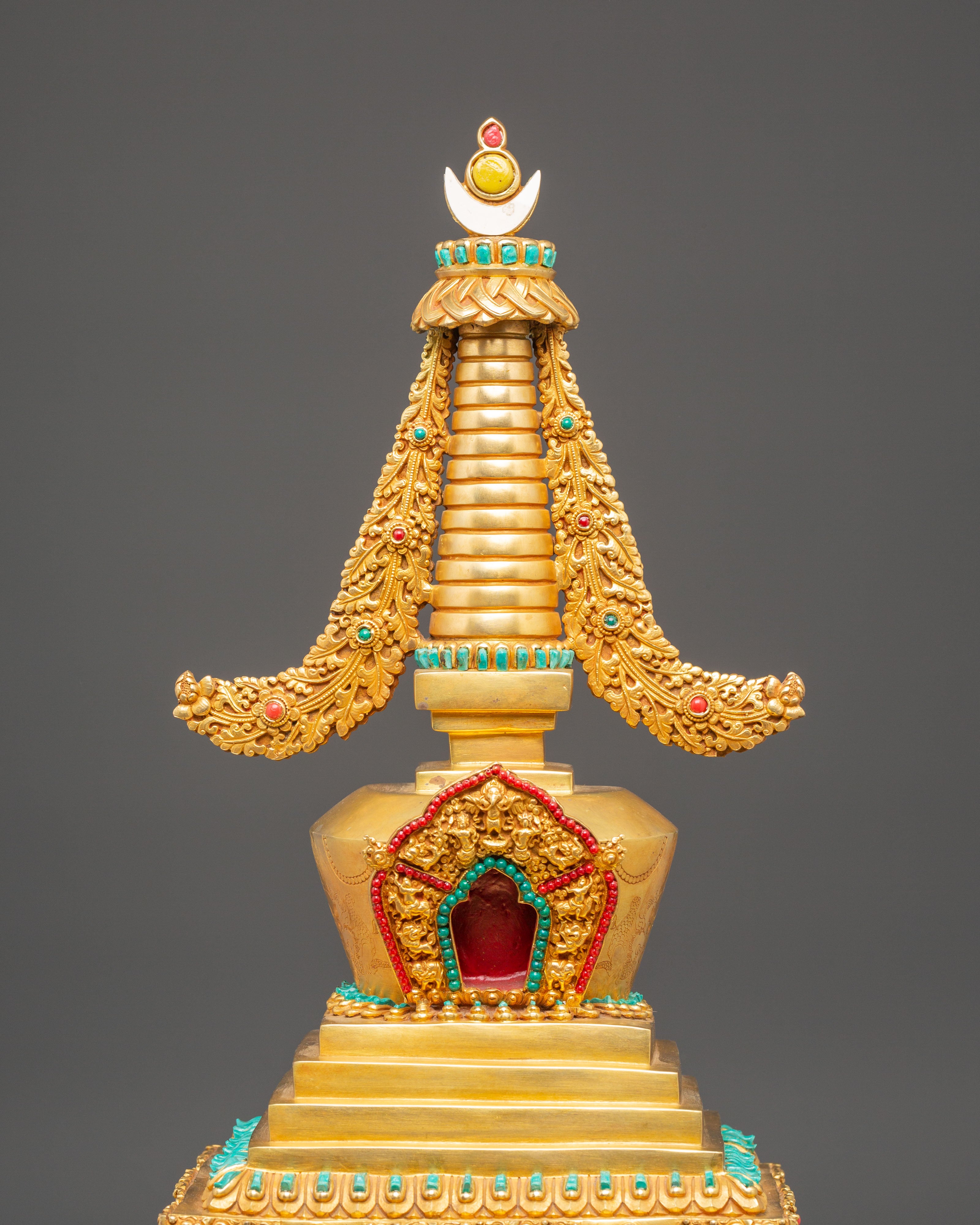 Spiritual Tibetan Buddhist Stupa | Gold Plated Sacred Monument