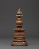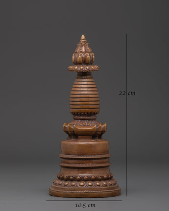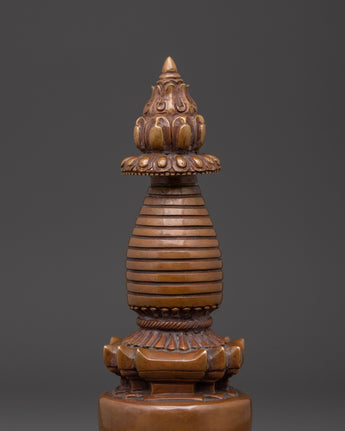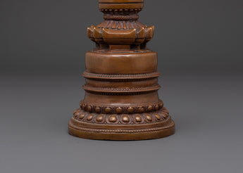 The Tibetan Buddhist Stupa is meticulously crafted with detailed designs, reflecting the rich cultural heritage of Tibetan Buddhism. The oxidized copper finish not only gives it a unique appearance but also enhances its spiritual energy, making it ideal for enhancing meditation, prayers, or rituals. Its design is inspired by the traditional Tibetan stupa, a sacred structure symbolizing the path to enlightenment, making it a powerful and meaningful accessory in your spiritual journey. This Stupa Tibetan Buddhist Shrine is both a gorgeous sculpture and a powerful symbol of spiritual rebirth. This shrine, whether used for meditation, as a decorative accent for your altar, or as a sacred object for rituals, is a continual reminder of Tibetan Buddhism's teachings.