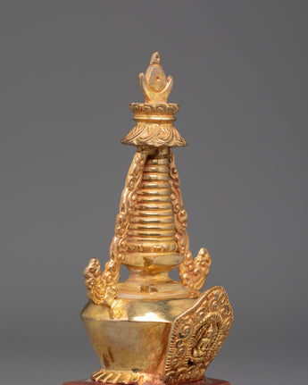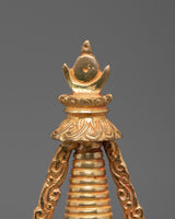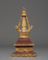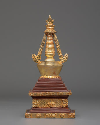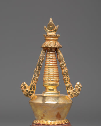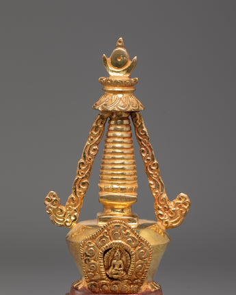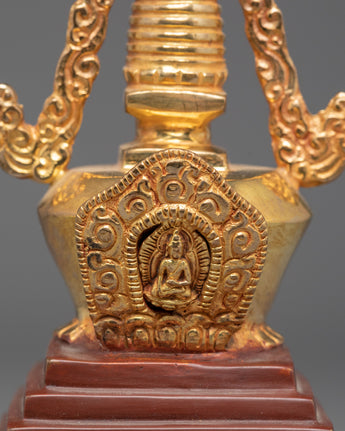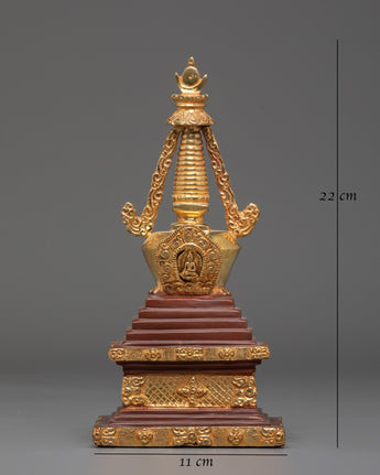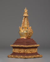 Each stupa is painstakingly crafted by hand. The dazzling gold plating and copper body enhance its magnificent beauty. This sculpture can be used as a focal point for your altar, a potent symbol of devotion, or a holy accent for your interior design. In addition to honoring Buddhist customs, owning this stupa allows you to bring serenity, good vibes, and a sacred presence into your everyday life.