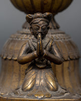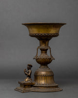 Antique Brass Stand Oil Lamp Set | Tibetan Butter Lamp Couple