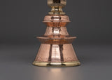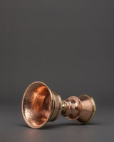 Introducing the Brass Border Butter Lamp, a stunning handcrafted ritual lamp that will boost your spiritual and meditation practices. This gorgeous lamp is 18cm tall and generously 12.5cm in diameter, with a copper body and a polished brass border. The buffing finish gives it a smooth, glossy appearance, making it a useful lighting item and a wonderful ornamental addition for your altar or meditation room. The 5.5cm base diameter maintains excellent stability during usage, while the 6cm inner depth provides adequate area to store ghee or oil for long-lasting illumination. These lights are substantial, weighing 0.59kg each and 1.24kg as a set.
