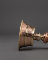 This handcrafted brass border butter light will improve your spiritual rituals with its bright attractiveness and symbolic significance. This copper and brass light set is ideal for Buddhist prayer, meditation sessions, or sacred area design because it is visually appealing. The lamp's sturdy construction and exquisite appearance make it an ideal addition to any meditation altar setting. Enjoy the classic appeal and spiritual aura that this ritual copper light adds to your holy area.