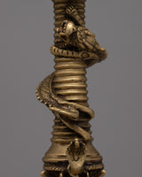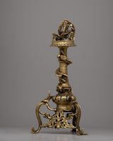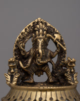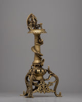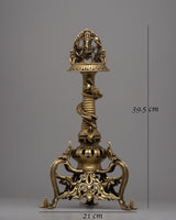 Discover the elegance and custom encapsulated in our handcrafted Brass Sukunda. This unusual item, which showcases Ganesh and is carefully fashioned on a brass body, stands 39.5 cm tall and has a dragon stand that can accommodate a butter lamp.