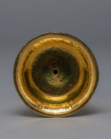 Our butter lamp is a copper lamp with gold plated. The floral design is carved on the lamp. The lid helps to protect the flame from the air and can easily be separated to refill the butter or oil. It is also engraved with different decorations to make it look more elegant.
