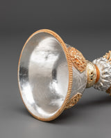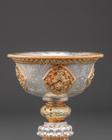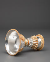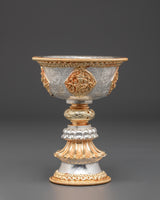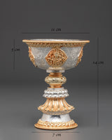 This Butter Lamp for Light Offering features exquisite gold and silver plating that beautifully reflects the dual nature of spiritual balance, symbolizing purity, devotion, and enlightenment. Its broad 7cm base provides excellent stability, while the 5cm inner depth is designed to hold traditional ghee or oil offerings with ease. Crafted for both functionality and sacred symbolism, this lamp enhances your meditation practice, honors the Buddhas, and elevates the sanctity of any spiritual space. Whether used in daily rituals or special ceremonies, it invites a deeper connection to your spiritual path and brings a radiant presence to your altar.