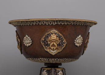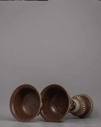 Experience the profound beauty and tranquility that our Copper Oil Lamp Set provides to your spiritual practice by making an investment in the spiritual enrichment of your house or shrine. Every lamp is an expression of the artistry and dedication of our artisans, who make sure that every little detail is filled with meaning and respect. Allow these lamps to remind you of the enduring flame of enlightenment that burns inside you, inspiring clarity and a feeling of direction in your spiritual quest.