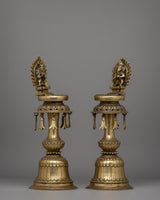 Decorative Panas Lamp Set (Pair) | Traditional Brass Lamps for Home and Temple Decor