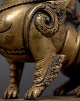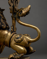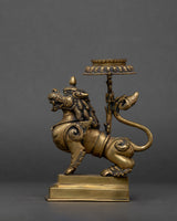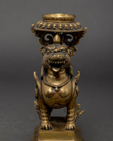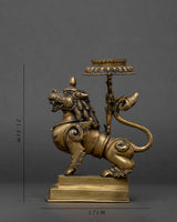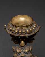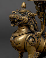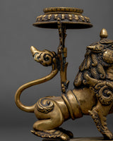 Our Dragon Lion Oil Lamp Set is made up of brass. It is finely handcrafted. The oil lamp is of lotus design, standing on the backbone of a Lion. This is a traditional butter lamp, a ritual implemented in Buddhist temples and monasteries throughout the Himalayan region.
