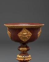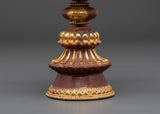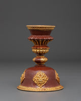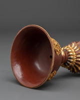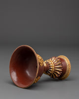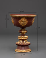 This magnificent ceremonial oil lamp is intended for use in Buddhist ceremonies and other sacred practices where light represents enlightenment and spiritual offerings. The inner depth of 5cm allows it to hold oil or any suitable lighting medium, providing soothing, consistent illumination for your spiritual activity. The gold filigree gives a luxurious touch while also highlighting the lamp's spiritual meaning, making it a stunning and powerful addition to your altar decor. The Gold Glided Ritual Oil Lamp, handcrafted with devotion, is more than just a source of light; it is also a holy tool that brings heavenly energy into your area. Whether used for meditation, prayer, or ceremonial lighting, this lamp adds warmth, light, and positive energy to your sacred place.