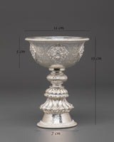 Traditional Handcrafted Silver Butter Lamp for Spiritual Rituals and Offerings