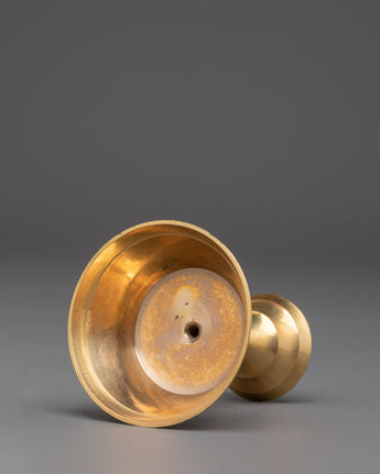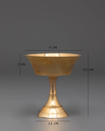 Expertly handcrafted from brass, this Tibetan Butter Lamp stands 6.5 cm tall with a base diameter of 3.5 cm and a bowl diameter of 6 cm. Weighing 0.40 kg, the smooth, polished finish and understated yet elegant design combine functionality with beauty. Its 2 cm deep inner bowl holds a generous amount of butter or oil for prolonged lighting. In Tibetan tradition, offering light to Buddhas and Bodhisattvas fosters wisdom and removes karmic obstacles, making this lamp a meaningful addition to your spiritual practice.