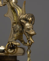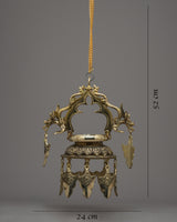 Standing an impressive 52 cm tall, the Hanging Oil Lamp is a magnificent work of art. Its meticulously handcrafted brass body exemplifies timelessness and elegance. It is ideal for meditation or enhancing the ambiance of any space because when lit, it emits a warm, inviting glow that fosters a sense of peace and tranquility.