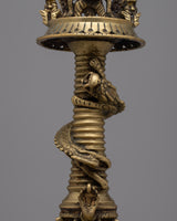 The Kartikeya Sukunda Oil Lamp is perfect for both ceremonial and ornamental uses. It symbolizes spiritual dedication and cultural legacy. It is an everlasting emblem of regard and auspiciousness, whether it is placed in a sacred area or given to a special person. With this exquisite piece, you can welcome the blessings of Kartikeya into your life and embrace the essence of handcrafted artistry.