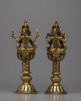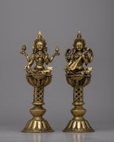 Saraswoti and Laxmi Oil Lamp Set | Traditional Diya Lamps for Pooja