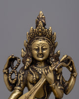 The brass finish and fine craftsmanship on each lamp in the set demonstrate the artisan's expertise and commitment to maintaining cultural legacy. Our Saraswoti and Laxmi, Oil Lamp Set, is a thoughtful present that may be used as a home shrine or meditation room. It is a timeless reminder of divine grace and the timeless beauty of handcrafted craftsmanship.
