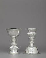 Handcrafted Silver Butter Lamps - Sacred Ritual Artifacts