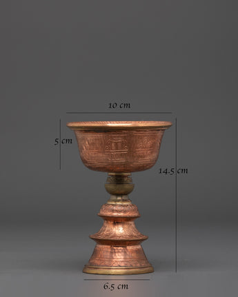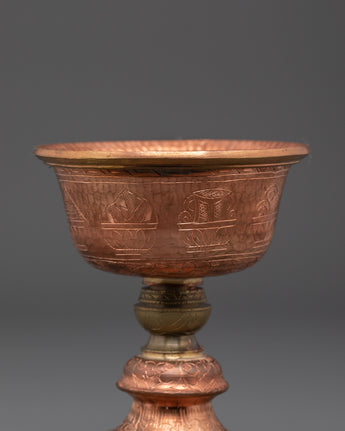 Spiritual Tibetan Ritual Butter Lamp | Handcrafted Brass and Copper Offering Bowl