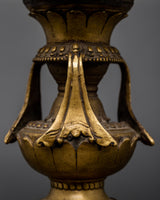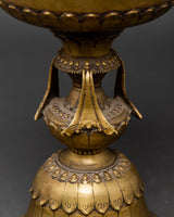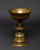 Our vintage butter lamp is made up of brass. It is finely handcrafted. This is a traditional butter lamp, a ritual implemented in Buddhist temples and monasteries throughout the Himalayan region.