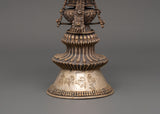 This exquisitely handmade Butter Lamp is a traditional Tibetan ritual item that brightens your altar or meditation room. It measures 21cm (height) x 14.5cm (diameter) and weighs 0.53kg. Constructed of solid silver with an antique finish, the lamp's base is engraved with mantras, adding a sacred touch that enriches your spiritual practice. The base diameter is 9.5cm, with an inner depth of 7cm, making it ideal for storing melted butter or oil to sustain the flame throughout rituals.
