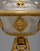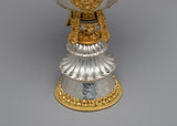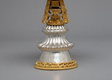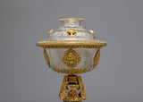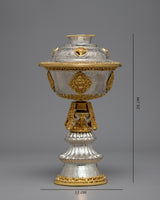 Our Tibetan butter lamp is a silver lamp set plated with 24K Gold. Each lamp is hand-carved with auspicious symbols. The lid helps to protect the flame from the air and can easily be separated to refill the butter or oil. It is also engraved with different decorations to make it look more elegant.