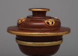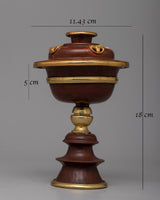 With its beautifully crafted oxidized copper bodies and gold plated, the Tibetan Oil Lamps Set will envelop your sacred place in an ethereal radiance. With dimensions of 18 cm in height, and 5 cm in inner depth, each lamp is elegantly positioned to allow sufficient place for your spiritual offerings. The set as a whole weights 1.21 kg, striking a balance between elegance and practicality.