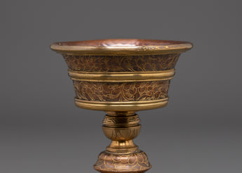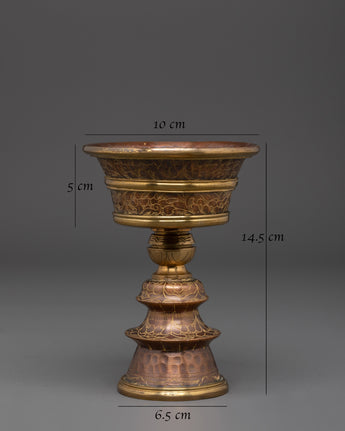 Traditional Tibetan Butter Lamp | Handcrafted Brass and Copper Offering Bowl