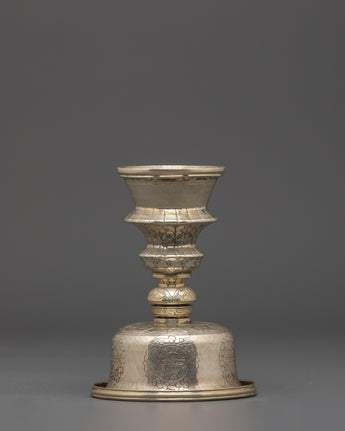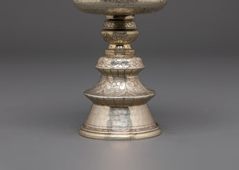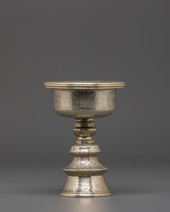 Handcrafted White Metal Butter Lamp | For Offering Rituals